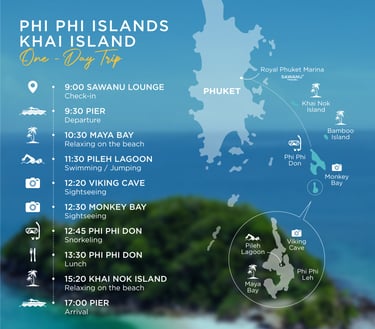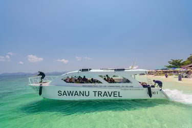 Discover the best of Thailand’s island paradise on our exclusive Phi Phi – Khai Island Day Trip by Semi Yacht. Departing from Phuket, this full-day experience takes you to iconic destinations including Khai Nok Island, Monkey Bay, Phi Phi Don, Viking Cave, Pileh Lagoon, and the world-famous Maya Bay. Enjoy beach relaxation, sightseeing, swimming, and snorkeling in crystal-clear waters, with a delicious lunch served at Phi Phi Don. Designed for comfort and style, this semi-yacht journey offers the perfect balance of adventure and relaxation—ideal for couples, families, and island lovers seeking an unforgettable day at sea.